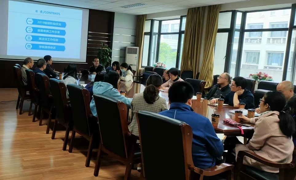 首先,由三位辅导员老师介绍年级员工各方面概况,包括学业成绩、奖助学金认定情况、员工党建情况、心理健康状况以及目前存在的问题等,并向各班班主任提出“大三出现分化,需要班主任精细化分层指导”的建议。