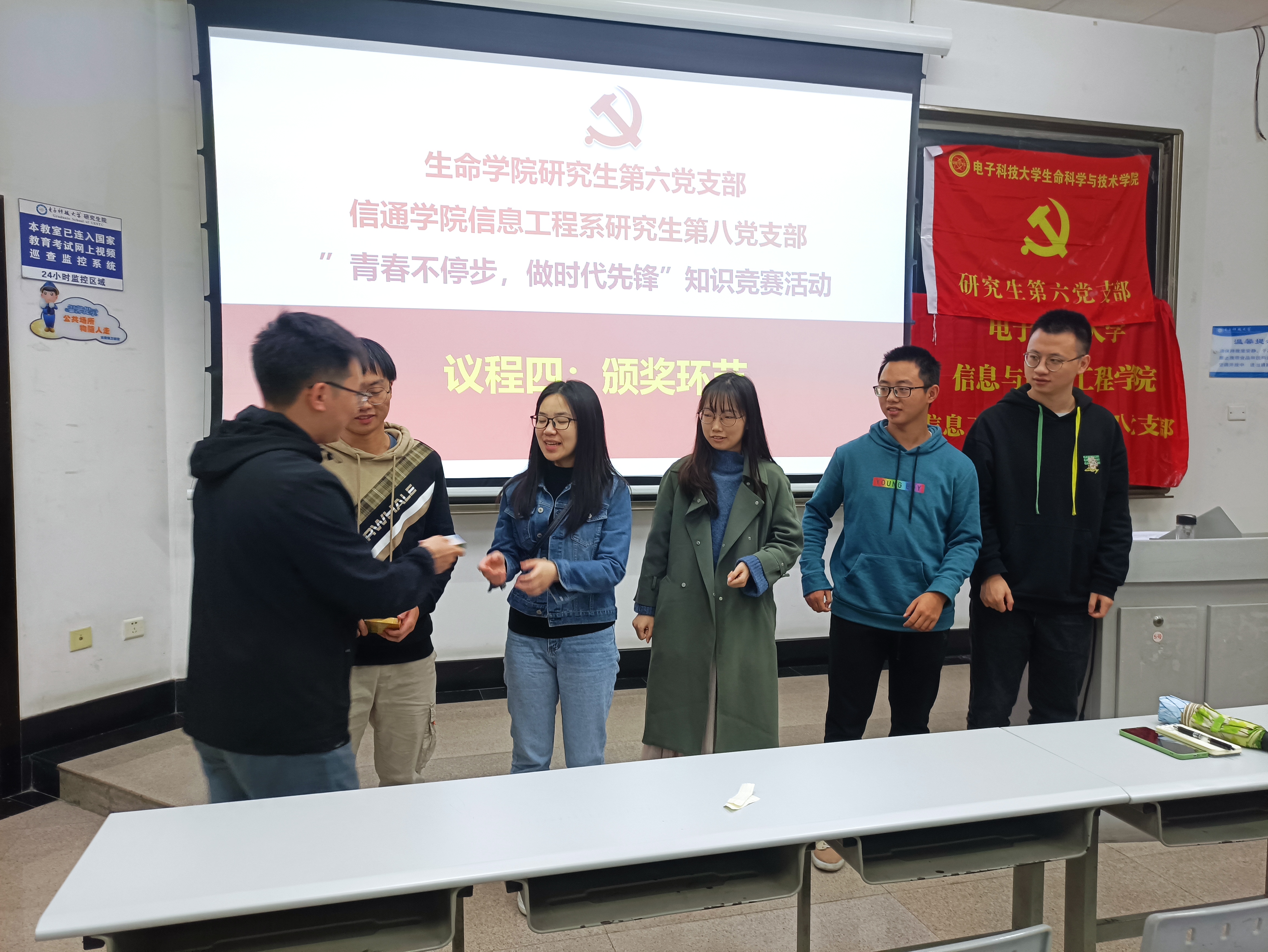 学习观看讲话后进入颁奖环节。第6小组同学以96分(满分100分)的成绩获得一等奖,第2、4小组分别以92分和90分的成绩获得二等奖,第1、5小组以88分和86分的成绩获得三等奖。