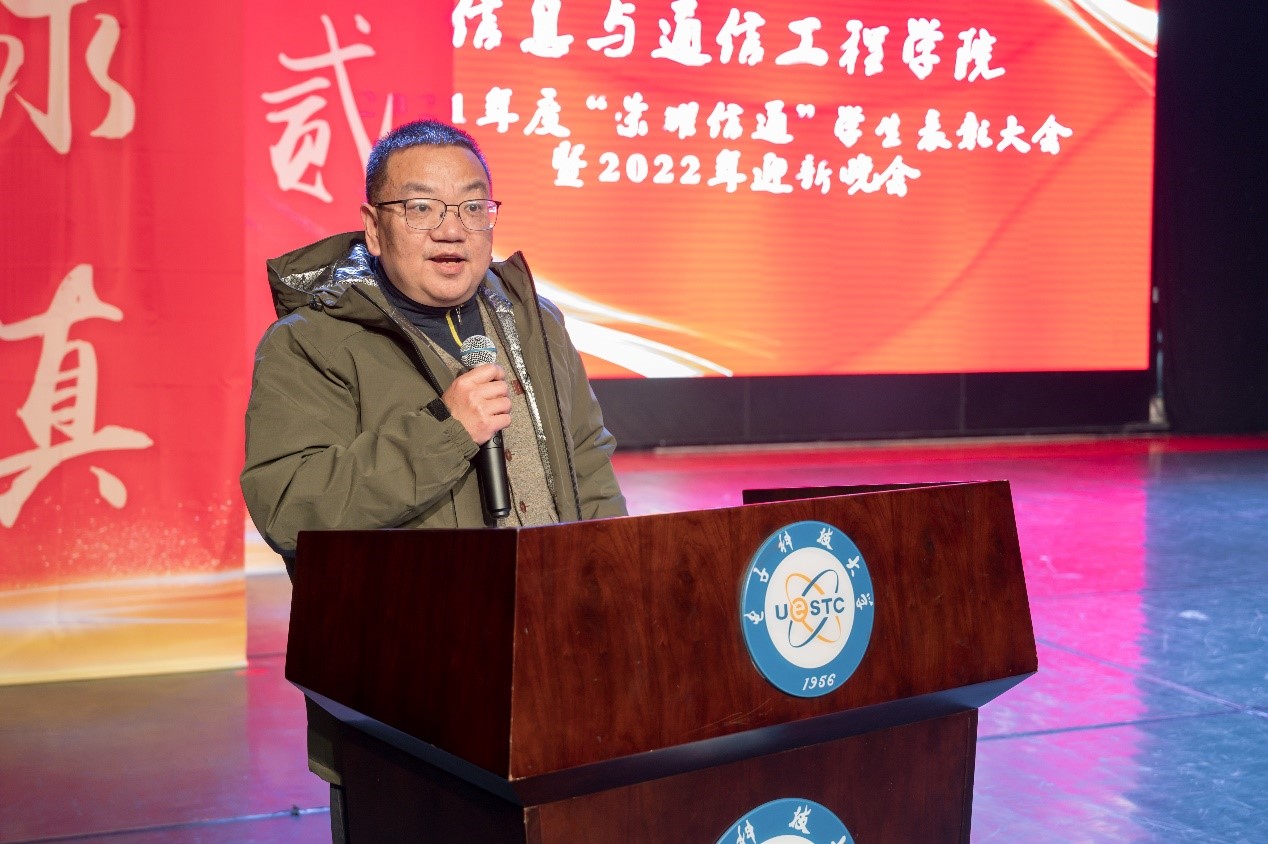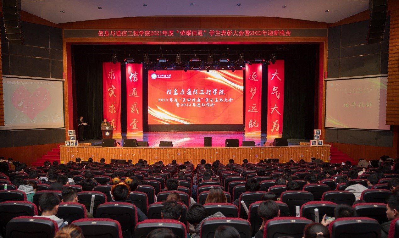 12月22日,公司在成电会堂举办2021年“荣耀信通”员工表彰大会暨2022年迎新晚会。校团委张军书记、老员工文化素质教育中心刘惠主任、韩蕾副主任、员工宿管中心黄娟主任、就业办张彦昭老师、体育部赵章志老师,公司领导与校外oppo、鼎桥、普源公司代表作为颁奖嘉宾。各年级辅导员班主任,共同见证信通学子的荣耀时刻。76名先进个人和7个先进集体荣获表彰,覆盖德智体美劳多方面,鼓励引导同学们全面发展。