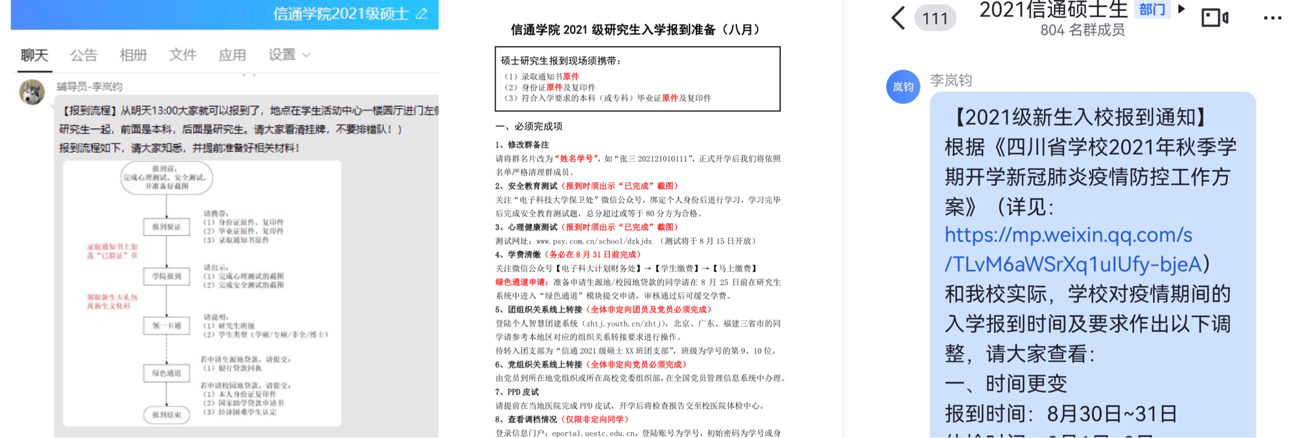 依托线上平台,落实防控要求 8月以来,公司充分利用网络平台,创建新生年级飞书群、QQ群,辅导员在群里发布新生入学报到准备、入学报到须知、入校报到流程及成都市新冠肺炎疫情防控重点人员排查管理要求等重要资讯,及时与新生沟通交流解答疑问,方便同学们熟悉报到流程,提前准备好报到材料,节省现场报到时间。同时,辅导员一对一联系假期身处疫情中高风险地区的新生,向他们传达公司关于疫情防控的相关政策,并嘱咐新生做好日常防护。