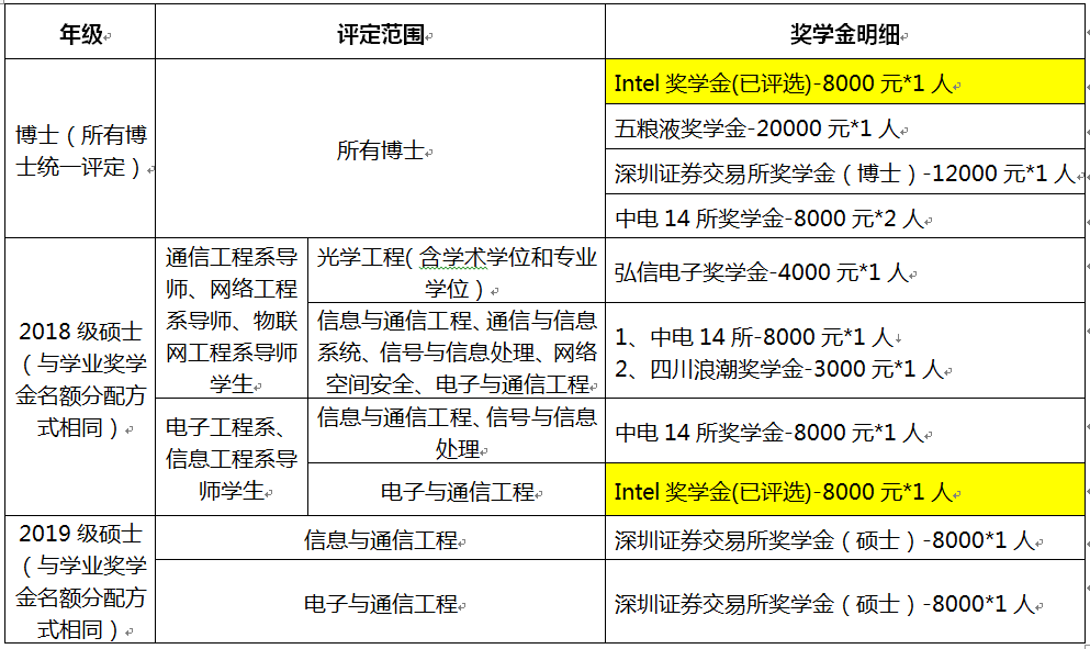 以下名额经公司研究生奖学金评审委员会讨论通过,包含已评选的专项奖学金(已标黄)和待评选的专项奖学金。本次仅申请待评选的奖学金。