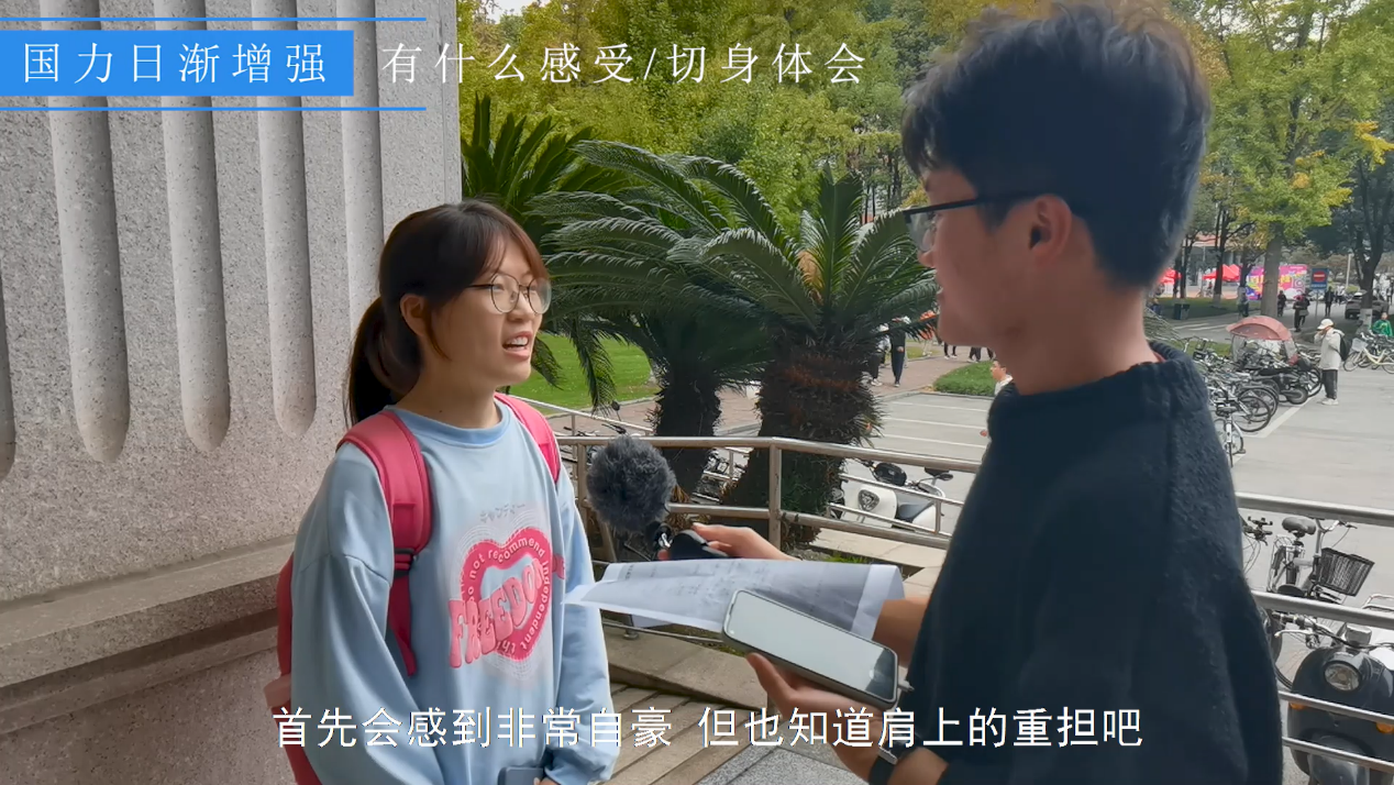 这次活动中,邀请了深度参与科研的同学接受我们的采访。他们从“创新”和“人才”两个角度,结合近十年直观感受到的变化,分享了自己对于创新驱动发展战略和科教兴国战略的理解。我在两位同学的亲身经历和科研故事中,更深刻地感受到了祖国过去的辉煌十年以及二十大报告的高瞻远瞩。