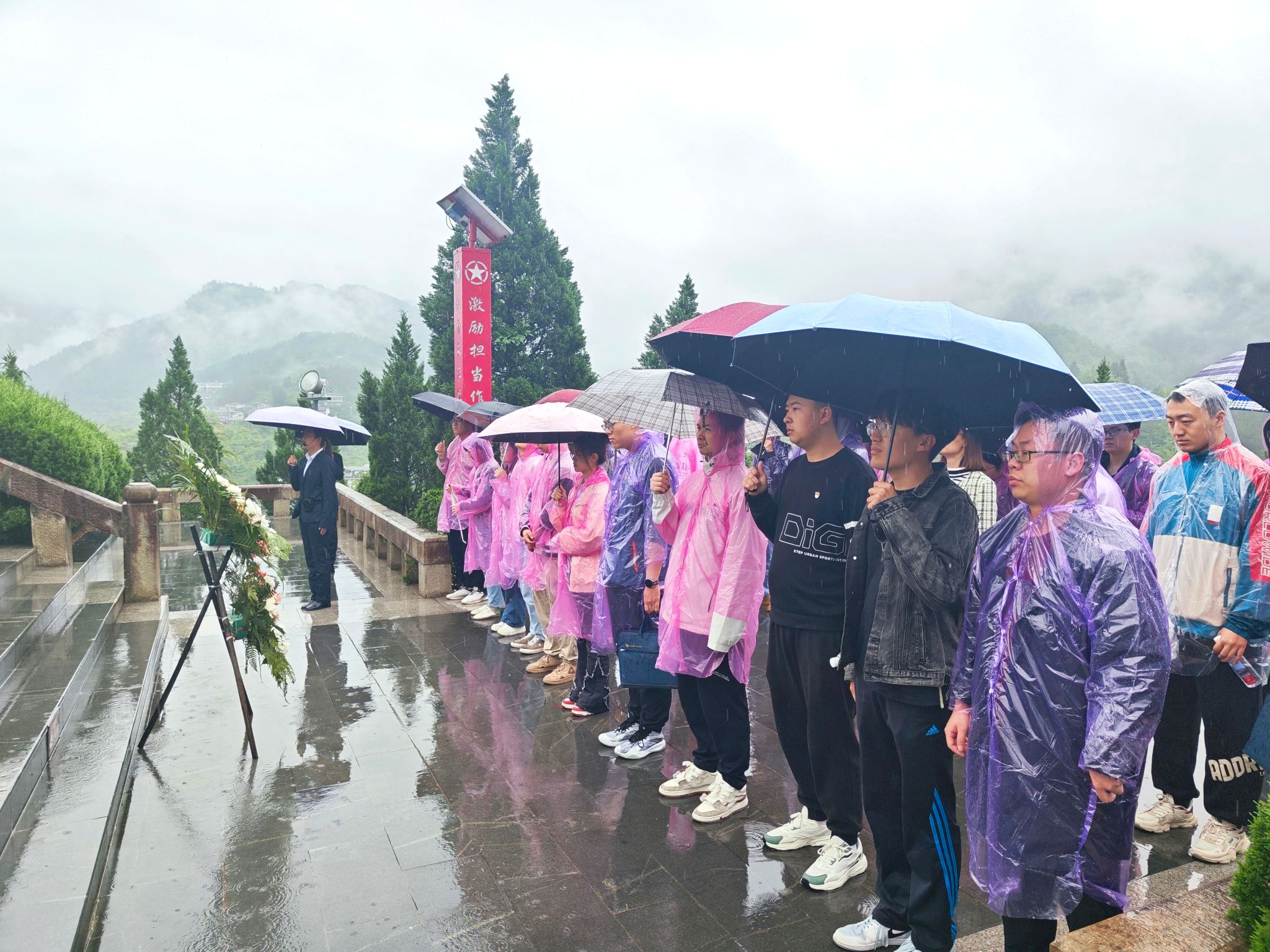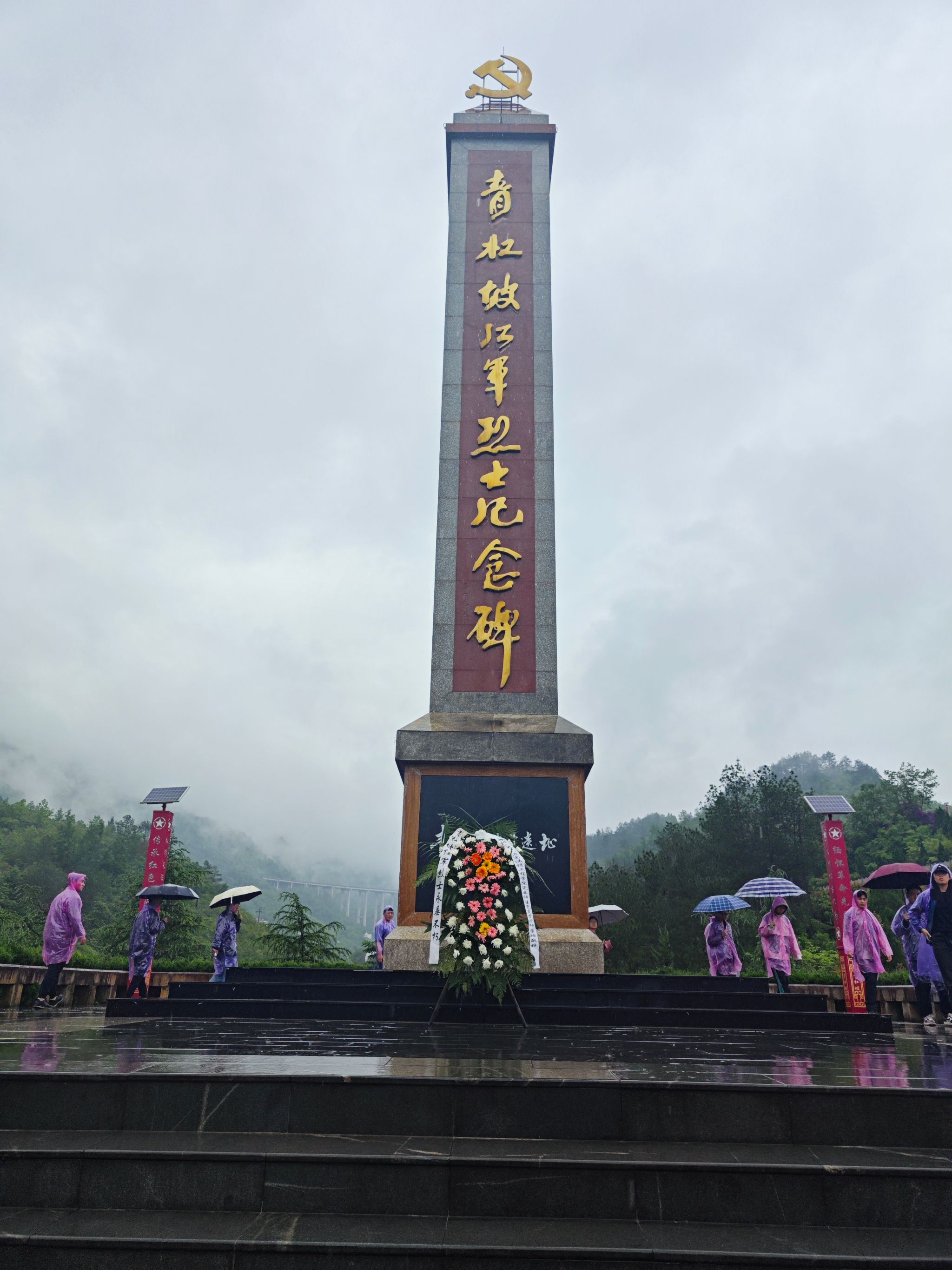 12日上午,党校老师带领培训班学员前往贵州省遵义市习水县土城镇,先后参观了青杠坡战斗遗址、女红军纪念馆。在青杠坡战斗遗址,学员们伴随着淅沥大雨拾级而上,来到青杠坡红军烈士纪念碑前。当年青杠硝烟漫,如今环山皆青颜。培训班为红军烈士敬献花篮,员工科科长江倩代表师生党员上前整理挽联。大家在纪念碑前聆听了青杠坡战斗的惨烈过程,怀着沉痛的心情绕碑慢行,向长眠于此的红军烈士致敬。