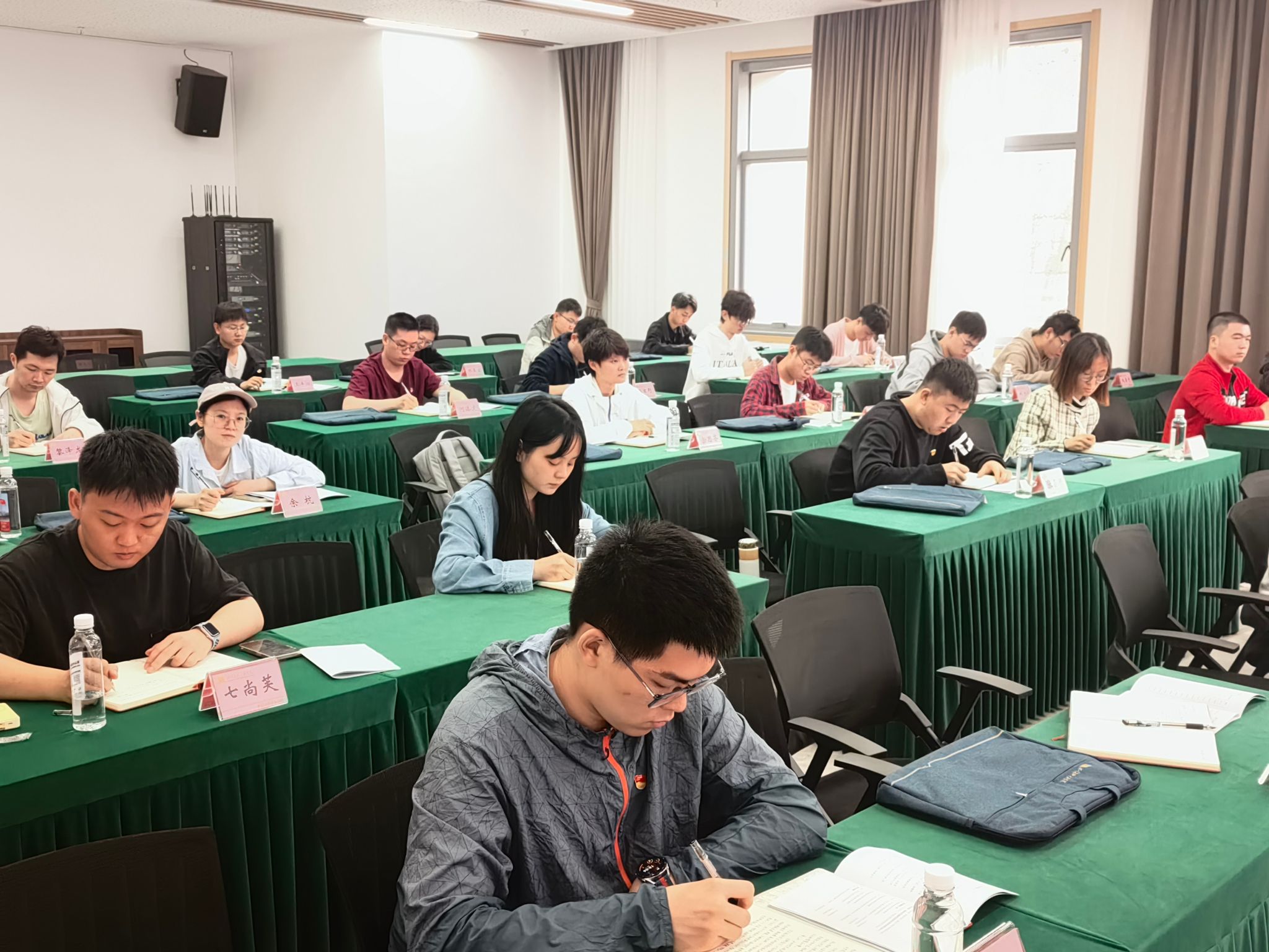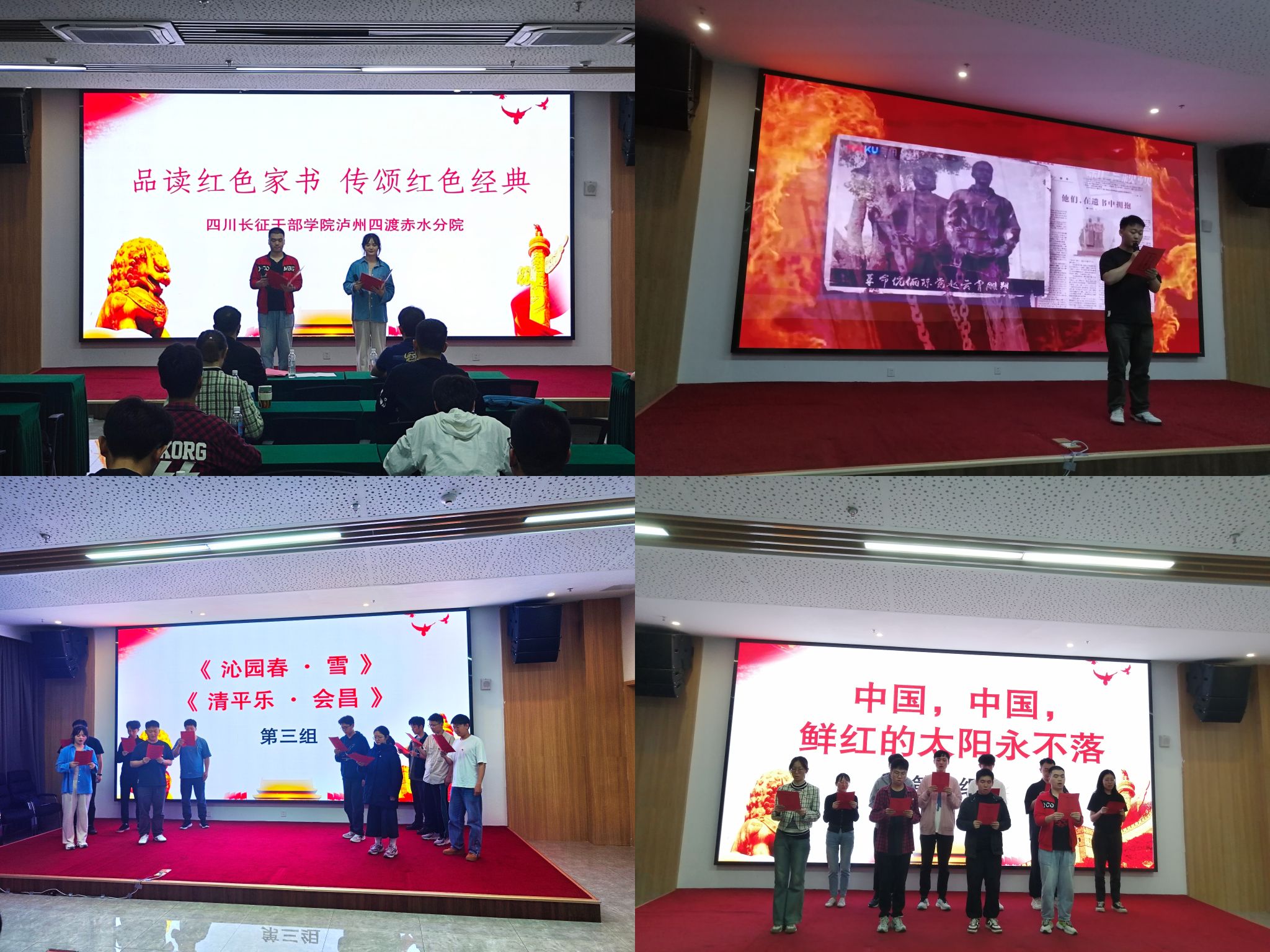 当晚,培训班组织开展了以红色家书阅读、毛泽东诗词朗诵、红歌传唱为主要内容的激情教学活动。三个小组依次分享了杨开慧、王尔琢、陈觉的家书,家书内容或言辞慷慨,或情真意切,都传达出革命先辈视死如归、大义凛然的大无畏精神。随后,各组朗诵了《西江月·井冈山》《忆秦娥·娄山关》《沁园春·雪》等著名诗词,感受革命领袖毛泽东的恢弘气度和斐然文采。在红歌传唱环节,大家先后带来《我的中国心》《中国,中国,鲜红永不落》《我们走在大路上》几首歌曲,在激昂的音乐和铿锵的歌词中表达对伟大祖国的赞美之情。活动最后,学员们全体合唱《没有共产党就没有新中国》,大家精神抖擞,嘹亮的歌声响彻会场!