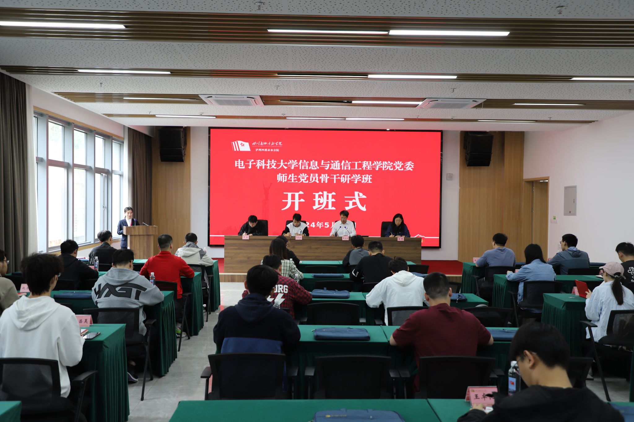 5月11日,参训师生党员抵达位于泸州市古蔺县的四川长征干部公司泸州四渡赤水分院。开班仪式上,古蔺县委组织部副部长、县委党校常务副董事长黄启明向大家介绍了泸州四渡赤水分院的发展历程,对学员们提出了参训期间的具体要求和殷切希望,祝愿培训活动取得圆满成功。黄启明为培训班授班旗,公司研究生辅导员李岚钧接旗。