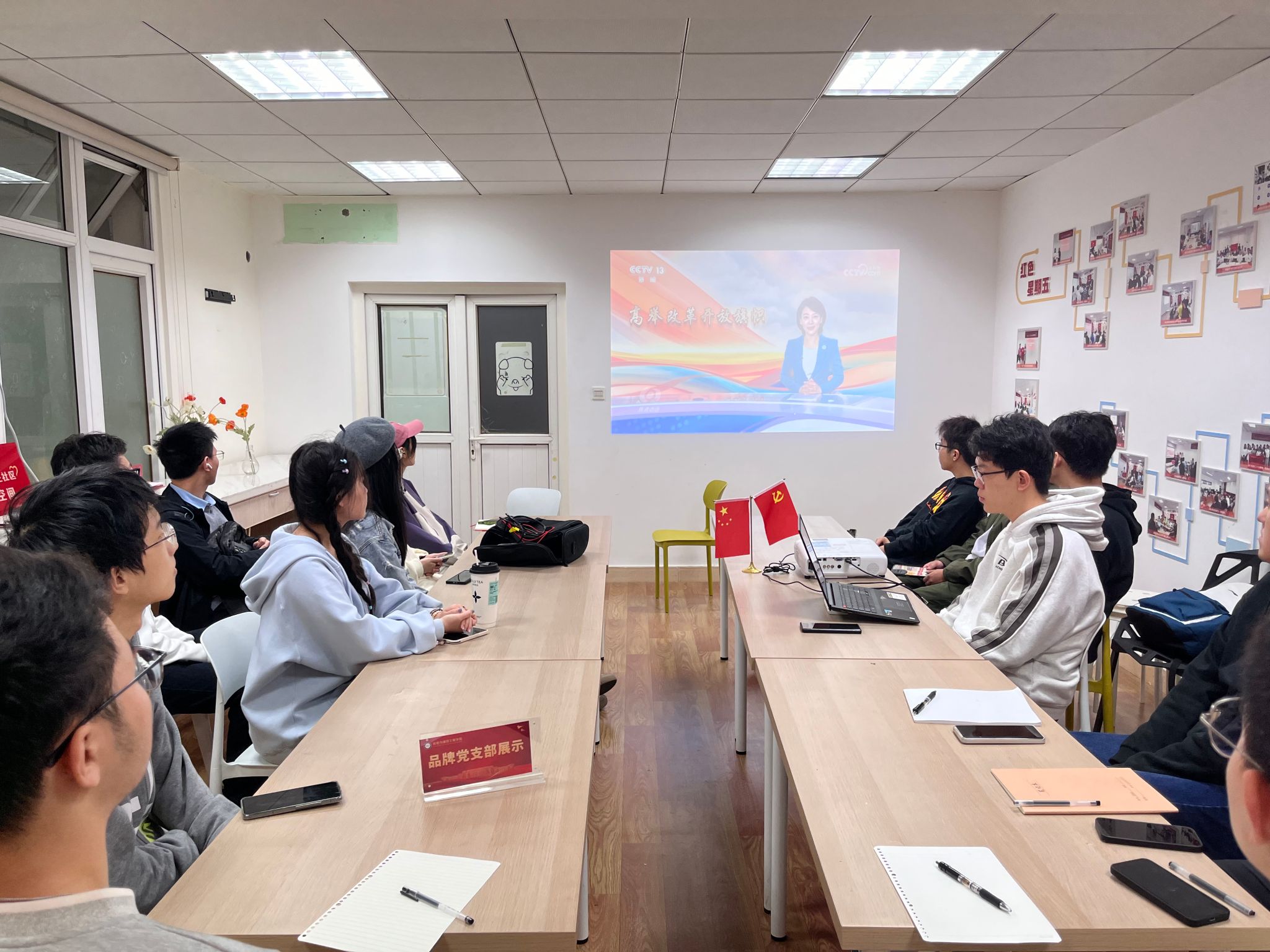 11月15日,伟德国际victor1946本科生第六党支部在公司“一站式”员工社区“家”门口的领航驿站,开展了“学习全会精神,持续深化改革”主题党日活动,集体学习党的二十届三中全会精神。