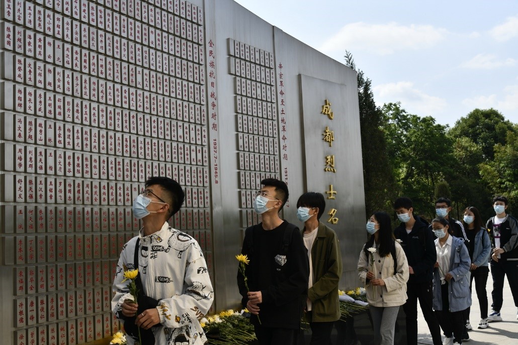 同学们有序地来到悼念广场,肃立在赫然挺立的浮雕纪念墙前,向革命烈士默哀、鞠躬、敬献鲜花,党员们重温入党誓词。浮雕墙上四千余名烈士英名令人震撼,惟有让红色基因、革命薪火代代相传,才是对英雄们最大的告慰。