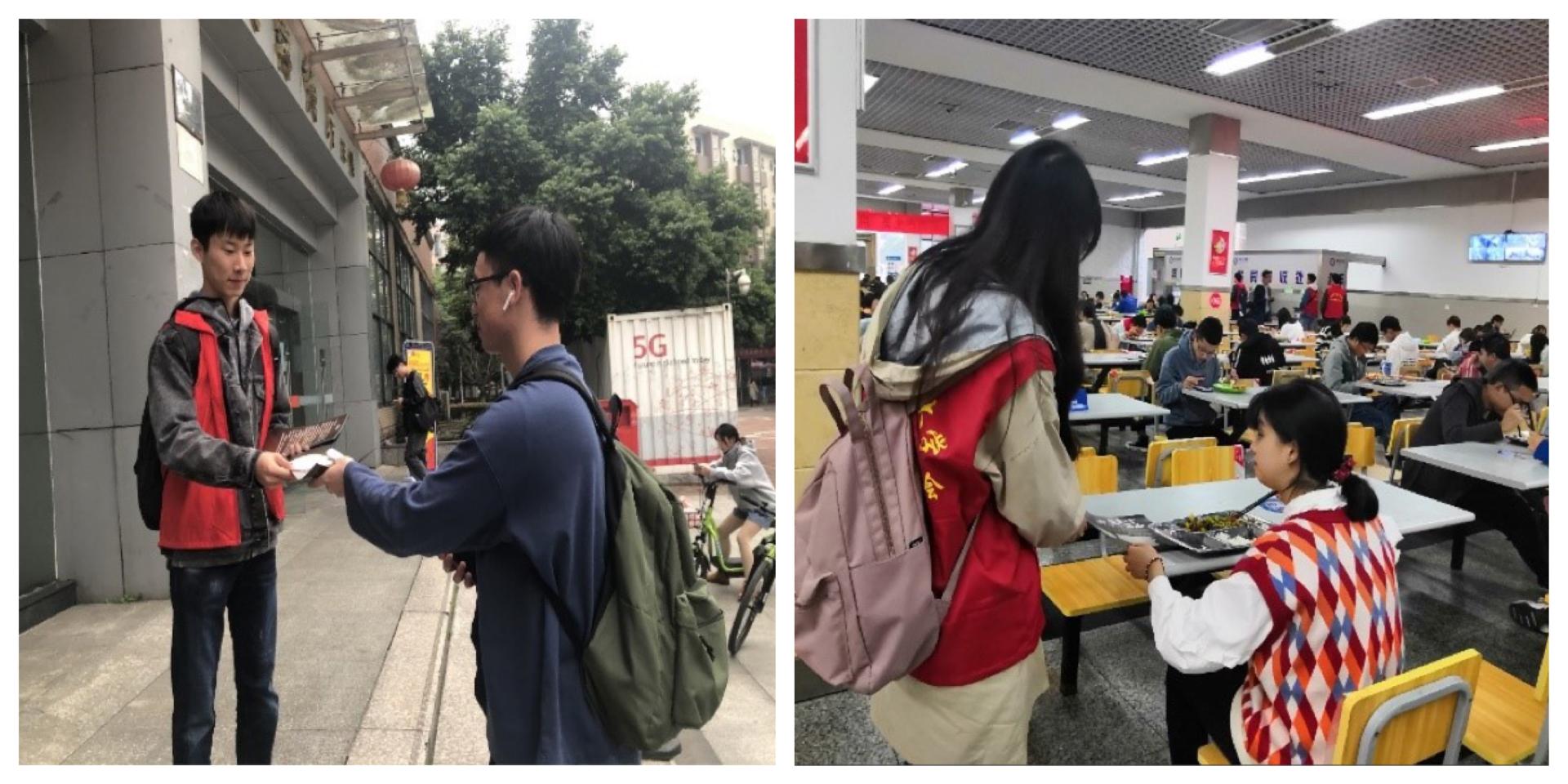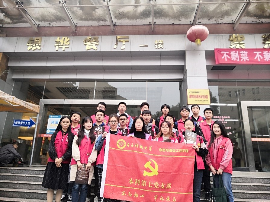 活动进行期间,支部同学们分散在餐厅出入口以及餐厅内,向前来用餐的同学们发放宣传单,并进行“光盘行动”倡议书的讲解和艰苦奋斗、勤俭节约的革命精神的宣传。支部党员纷纷表示作为党员先锋,要带头学习老一辈无产阶级革命家艰苦奋斗、勤俭节约的精神,反对铺张浪费和大手大脚,抵制拜金主义、享乐主义和奢靡之风。