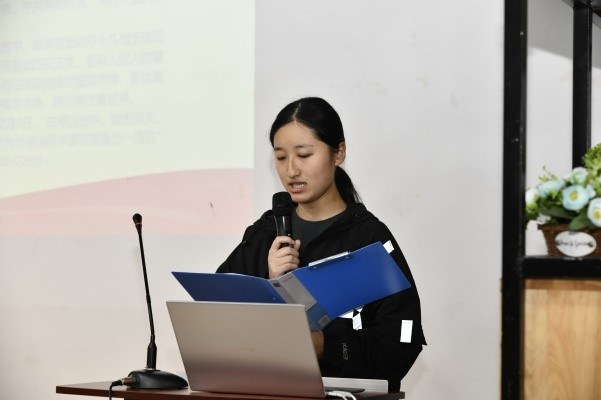 第二位分享的同学是王晨烨,她带领支部同学们将目光聚焦在了一位断肠明志的英雄人物——陈树湘的身上,她带领同学们回顾了陈树湘的生平和早年经历,重点分享了他的英雄事迹:陈树湘在反“围剿”中人传达了中革军委的命令,掩护主力红军抢渡湘江。她向同学们介绍到在陈树湘牺牲地道县,近些年来,也建设了陈树湘烈士纪念地等重要纪念场所,以供世人瞻仰凭吊、缅怀学习,烈士革命精神正在不断弘扬光大,红色基因正溶于血脉、代代相传。