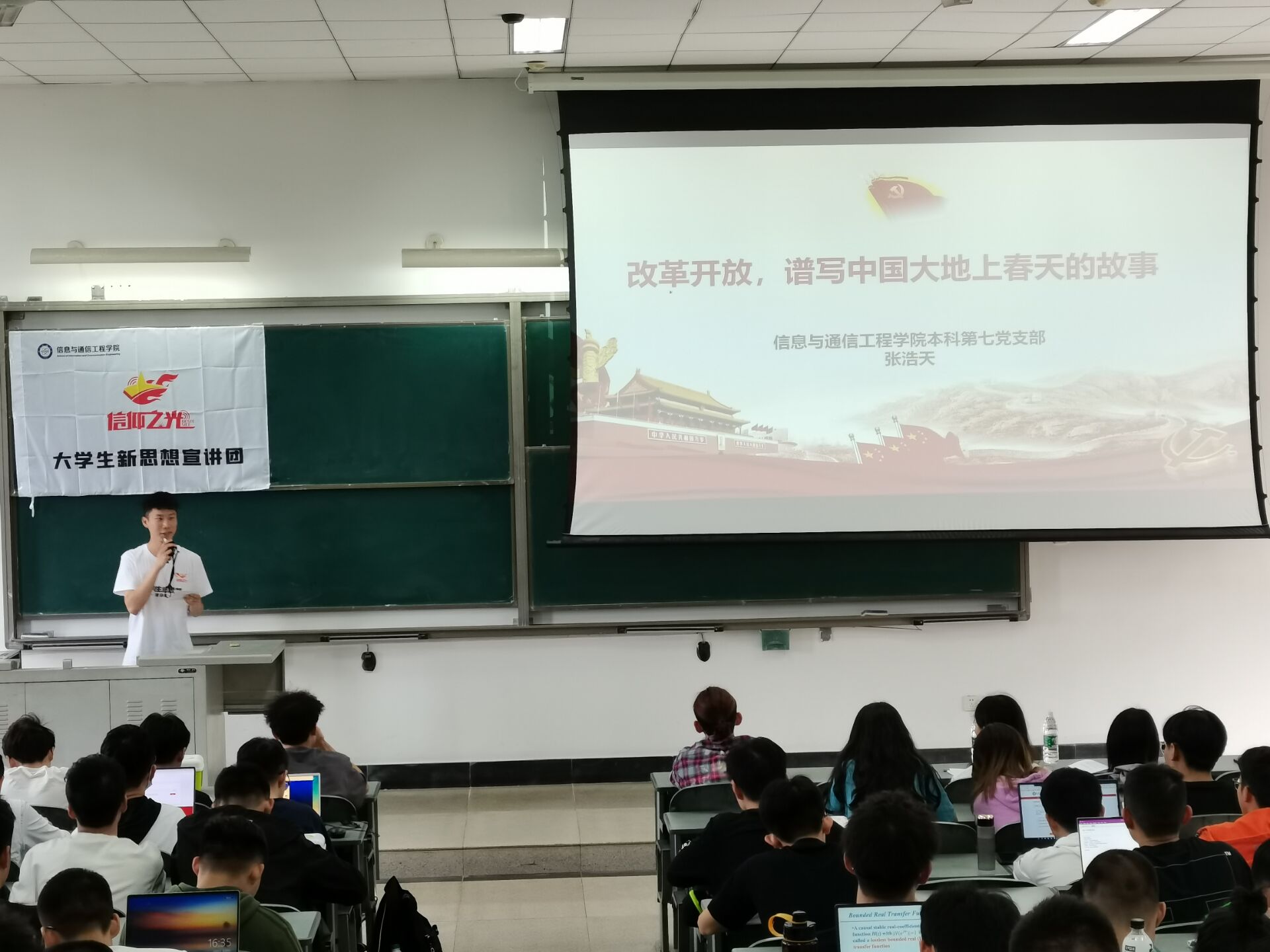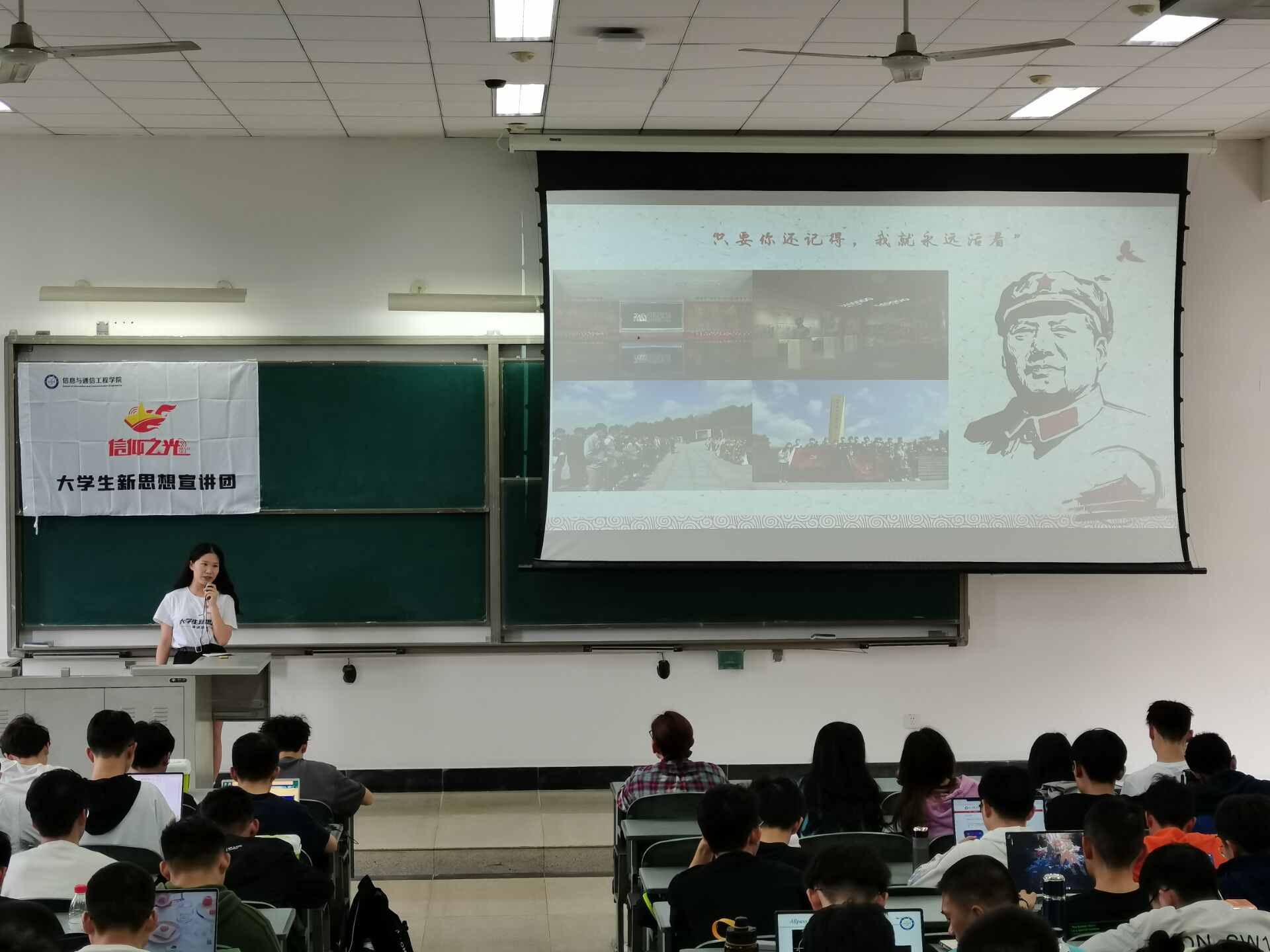 5月6日,为进一步落实推进党史学习教育,“5月的向日葵”辅导员工作室下属的“信仰之光”老员工新思想宣讲团,面向信通分党校第67期入党积极分子培训班300余名学员,开展专题辅导报告。宣讲团成员以中国外交、科技报国、抗美援朝、长征精神等为主题展开讲述和分享。