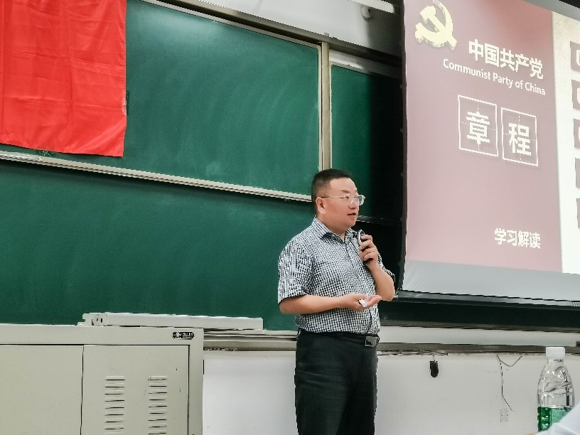 开班典礼结束后,李玉柏以十九大和习近平新时代中国特色社会主义思想为切入点,从党章的发展历程、总纲、条文三个方面中国共产党章程专题授课。