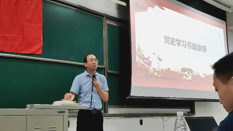 随后,马克思主义公司米华全老师上台为学员推荐党史书籍。米老师结合自己的阅读感悟,对《中国共产党简史》、《习近平论中国共产党历史》、《毛泽东、邓小平、江泽民、胡锦涛关于中国共产党的论述的摘编》和《习近平新时代中国特色社会主义学习问答》四本书的特点、侧重点以及推荐原因进行了详细讲解。