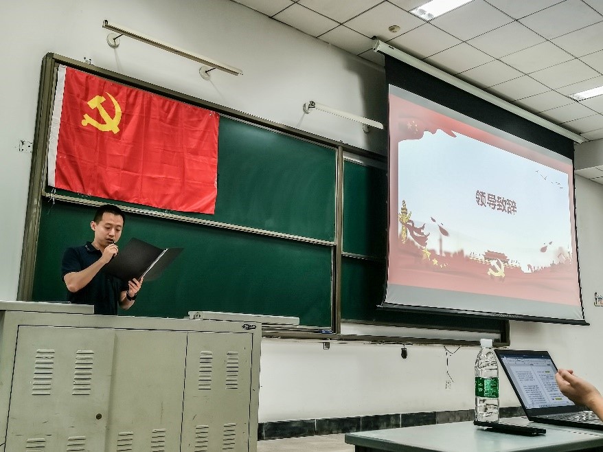 学员代表孙岩同学结合建党年历史和自身理论学习成果,概述在党中央坚强领导下,克服新冠肺炎疫情影响、夺取脱贫攻坚战全面胜利的伟大成就。孙岩说到,“我们青年同志要学习党的智慧、党的精神,积极向党组织靠拢,是无上崇高而光荣的。”同全员共勉。