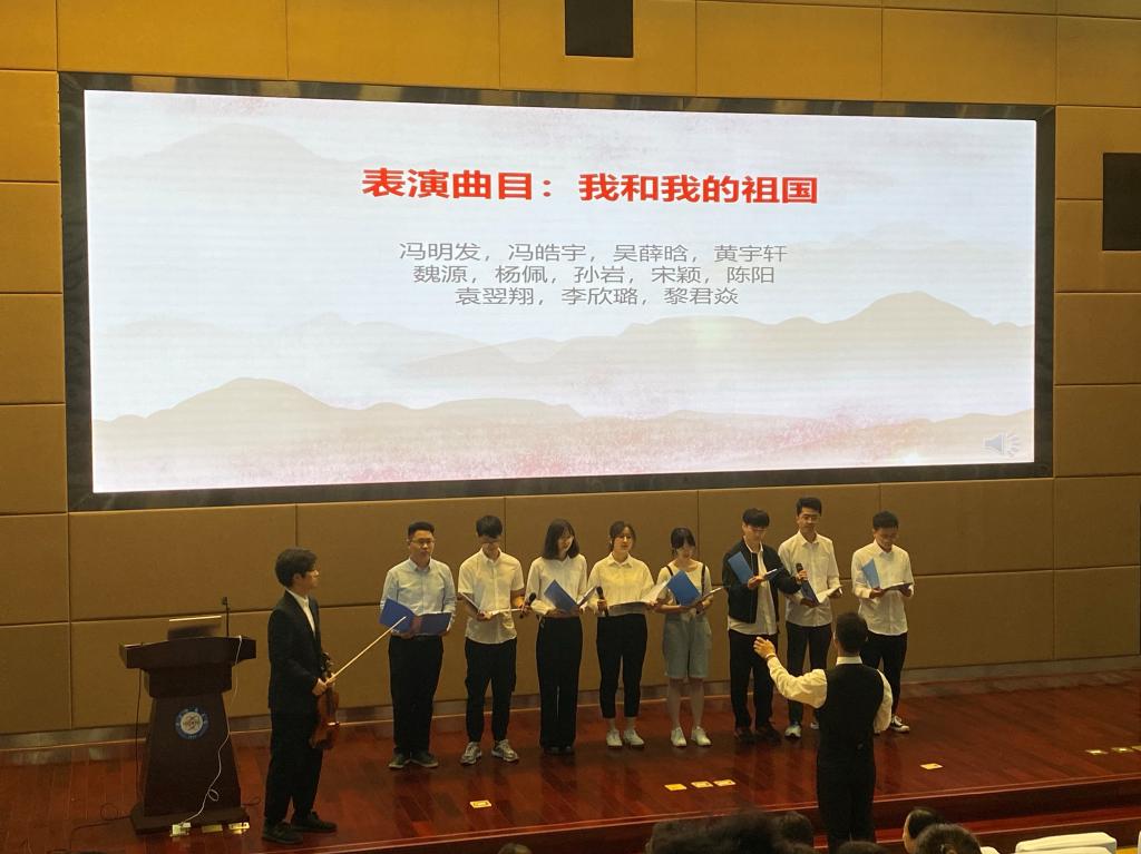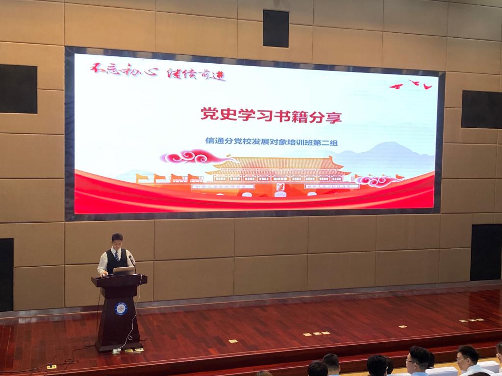 典礼尾声,信通分党校发展对象培训班学员代表进行社会实践展示,首先分享学习党史书籍的心得感悟,并通过朗诵、合唱等方式表达了对党的崇高敬意。