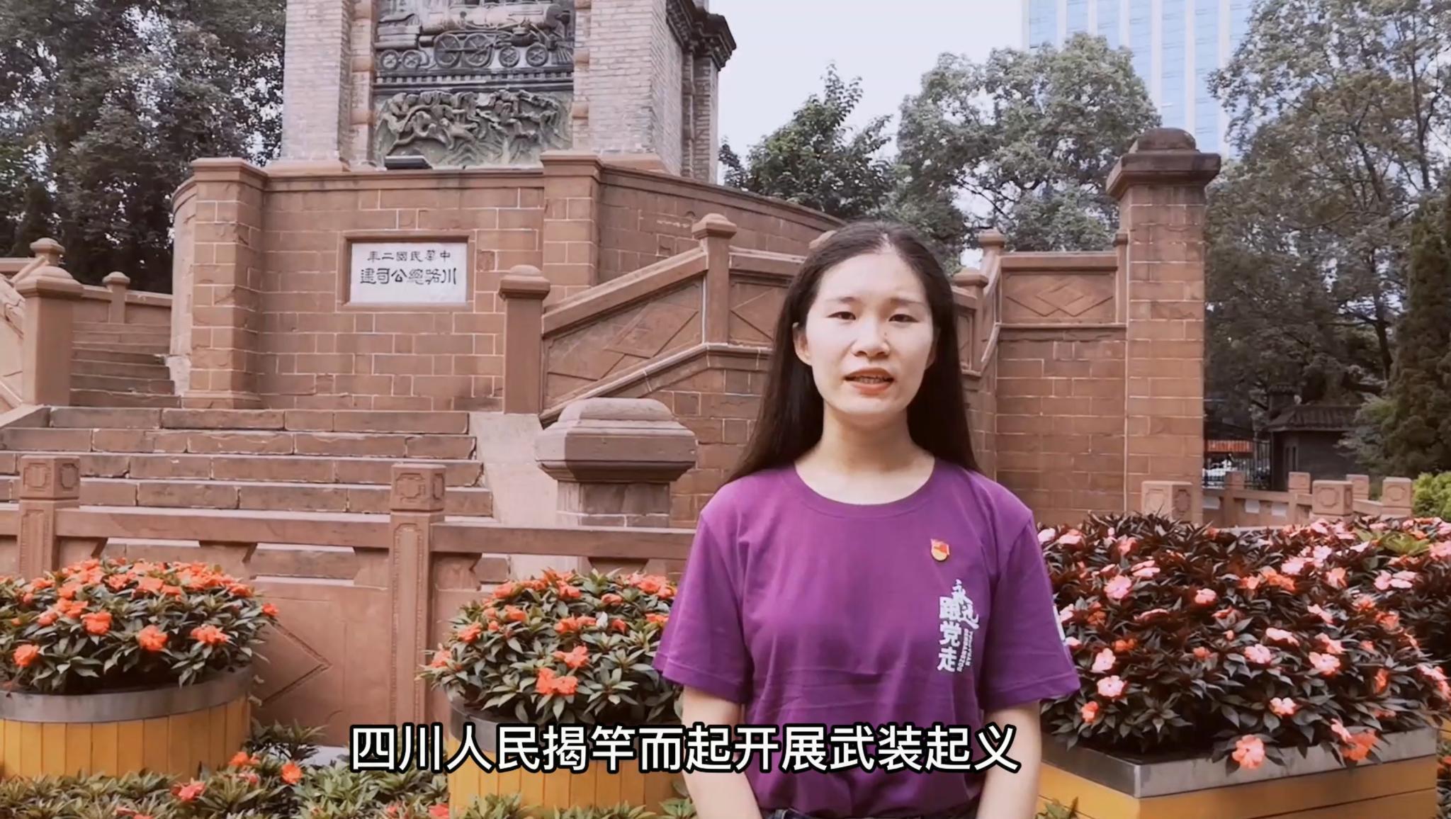 7月13日,孙美琪同学前往成都市人民公园进行微党课录制。面对成都大轰炸纪念墙,介绍了大轰炸时期日军的残忍暴行以及给成都地区发展和人民生命财产安全造成的巨大伤害;随后前往辛亥秋保路死事纪念碑,讲述保路运动的始末,感受成都人民英勇不屈的斗争精神。