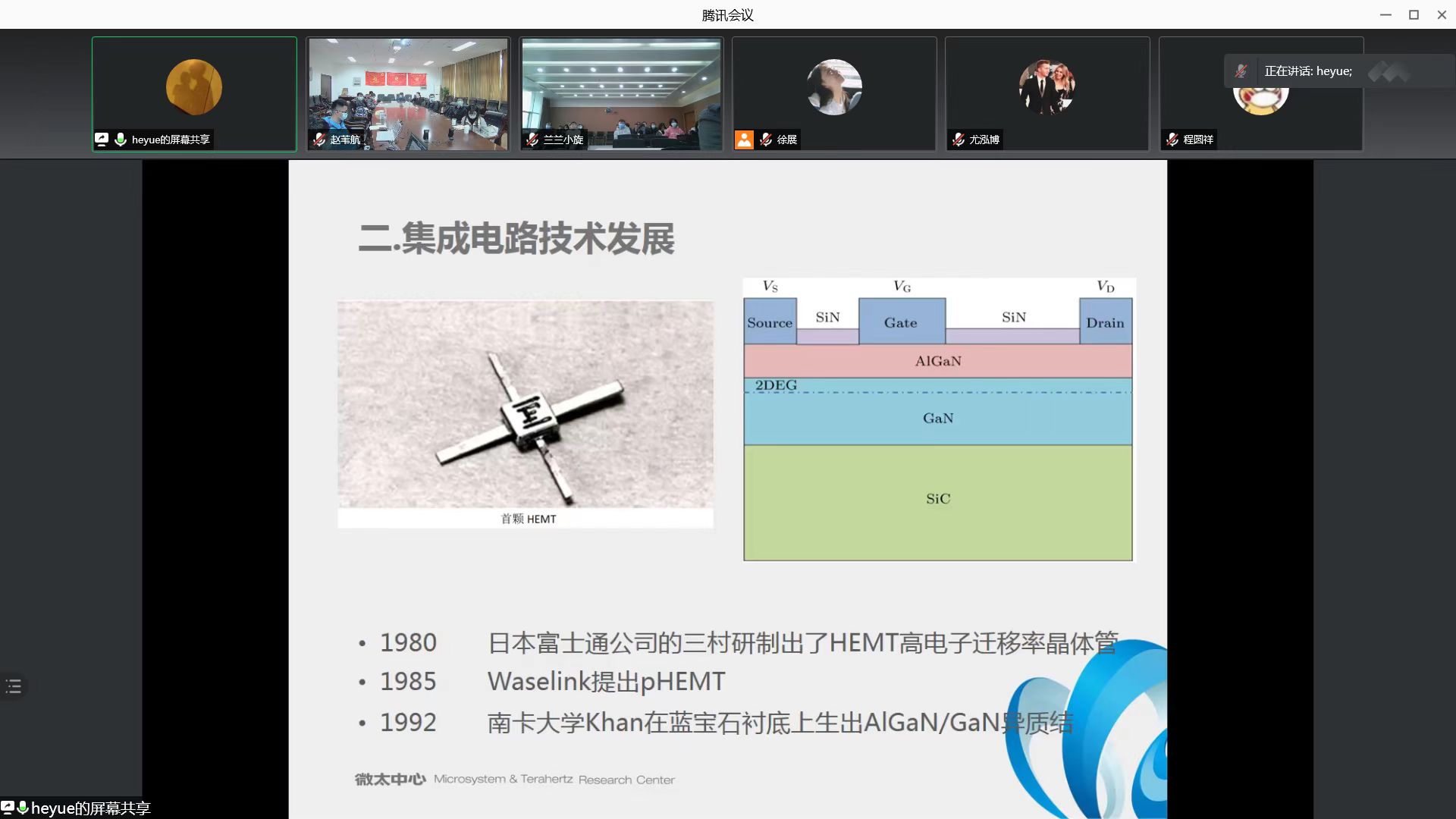 首先,微太中心3研究员依次进行学术报告分享。韩江安研究员从集成电路技术的起源讲起,为同学们详细介绍了集成电路工业的发展和现状。谭为研究员从背景介绍、性能提升研究、磁场调控、具体应用和未来展望几个方面为同学们讲述自旋太赫兹源的研究及应用。张莹围绕SiC中子探测器的研究内容和后续思考,详细介绍了该技术的最新研究进展。