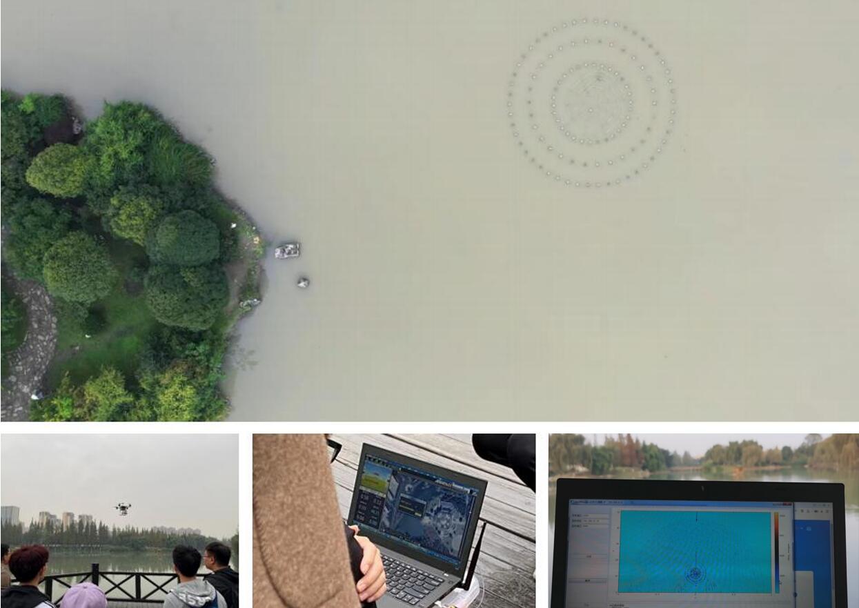 员工用自制的小雷达得到了清水河校区鹭栖湖三层圆形喷泉阵的雷达图像