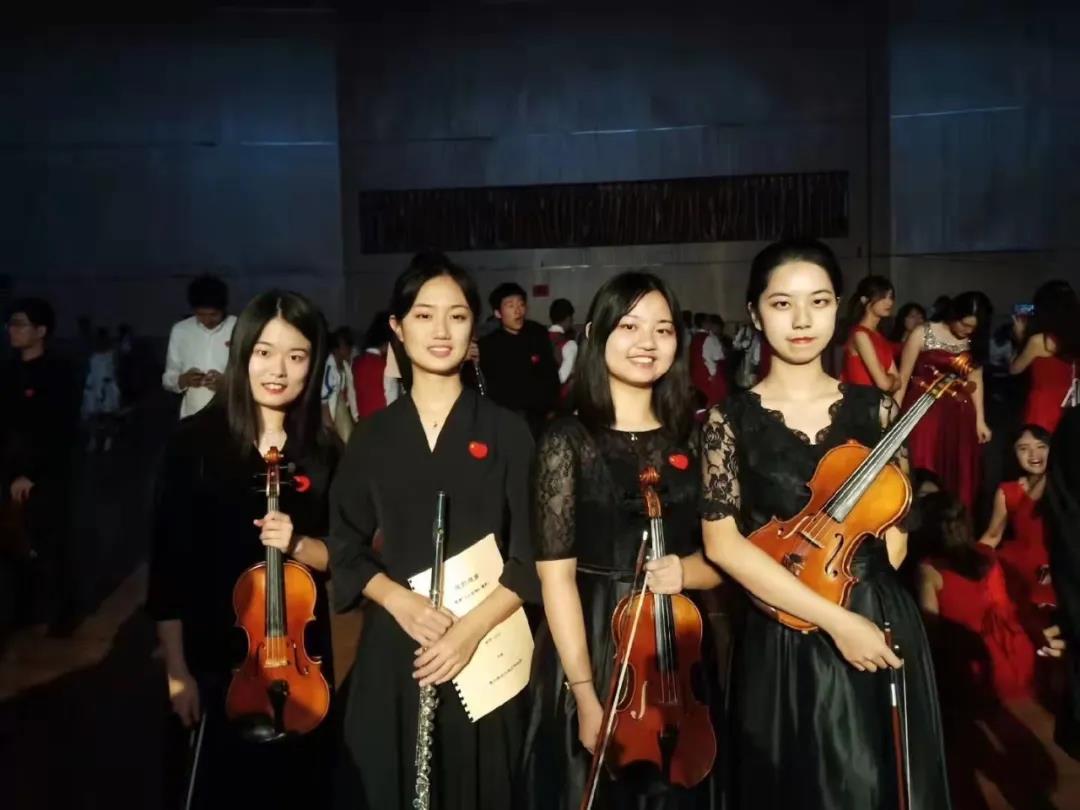 初冬(左二)和校交响乐团的小伙伴